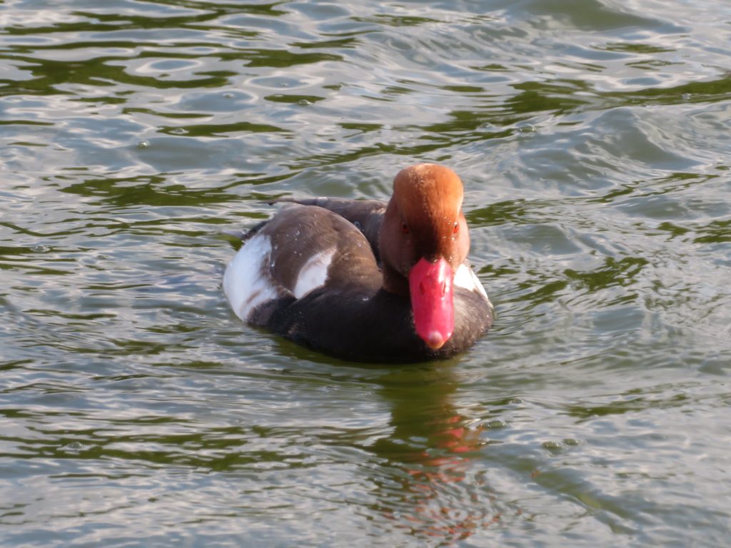コロナ禍でStay Home の時間が多くあるのですが、気持ちが晴れ晴れとはしません。水生生物科にとてもカメラ撮影の上手い方がいて、鳥にも非常に詳しく、彼が撮った写真をいつもメンバーと其の他大勢の方にメールで一斉送信して下さいます。アカハシハジロ、この鳥は非常に珍しい渡り鳥でめったに見られないということであり、ネットで野鳥愛好家のブログ情報で高槻の山の方からナビで門真市の弁天池に車で撮りに来られました。その公園内の池は私の家から自転車で10分の距離にあり、時々集会でその横を通ります。私も行ってみました。望遠レンズを付けたカメラマンが数人、三脚を立てて狙っておられました。写真を添付します。アイチャッチ画面の写真は水生生物科の先輩、高橋さんが送ってくださった1枚から選ばさせて頂きました。(全然腕前が違うんですよ!)