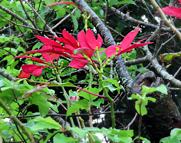 沖縄は、35年ほど前に出張できたことがあるが、あれは沖縄だったのかと思われるほどの印象である。那覇周辺の主要道路のビル群と高速道からみられる一般住居をみて、ここの主要産業はなんだろう? ナビを見ているとローソン、ファミリーマート、セブンイレブン、コンビニの多いこと、市街近くのスーパーマーケットのお米は北海道産と新潟コメ処産¥4300/5kg以上で少し高い、キャベツは安く¥250程、現地在住の東南アジア系住人が夕刻に買いに来ていた。国際通りは原宿、若い女性に人気の軽井沢のショッピング街の雰囲気を近代化された感じ、卒業旅行風の若者多く、外人が見当たらず国際性はない、車で通っただけであるが、テーシャツ3枚¥1000ののぼりが記憶に残る。有名な水族館には行かなかったが、近くの観光地はレンタカーを利用した若者に出会ったが季節のためか少ない感じ。フクギ並木は薄暗いが、海岸沿いの若人の電動キックボードの車列は夕日に映える。ファミリー向けと記載のあった海鮮料理店で食べたミニ海鮮丼は¥800であったが、ホテルなら¥2000は越えていたと思われ新鮮でおいしい。現地物価は安いのだろう。県立博物館近くのおもろまちには新しいショッピングセンタ、マンション、ホテルなど住みやすそうな街が開発されている。街路樹はブーゲンビリア、ハイビスカスがあちこちで見られ常夏です。落葉樹は未だ芽吹いていないが、嘉手納基地周りのモクレンのような黄色い花が美しい。 野草はシロバナセンダングサが目立ち、大阪で見られる春のはなが既に咲いています。鳥はカラス、ツバメ、ヒヨドリ、昆虫は気づかず ーーーー楽しい旅でした。