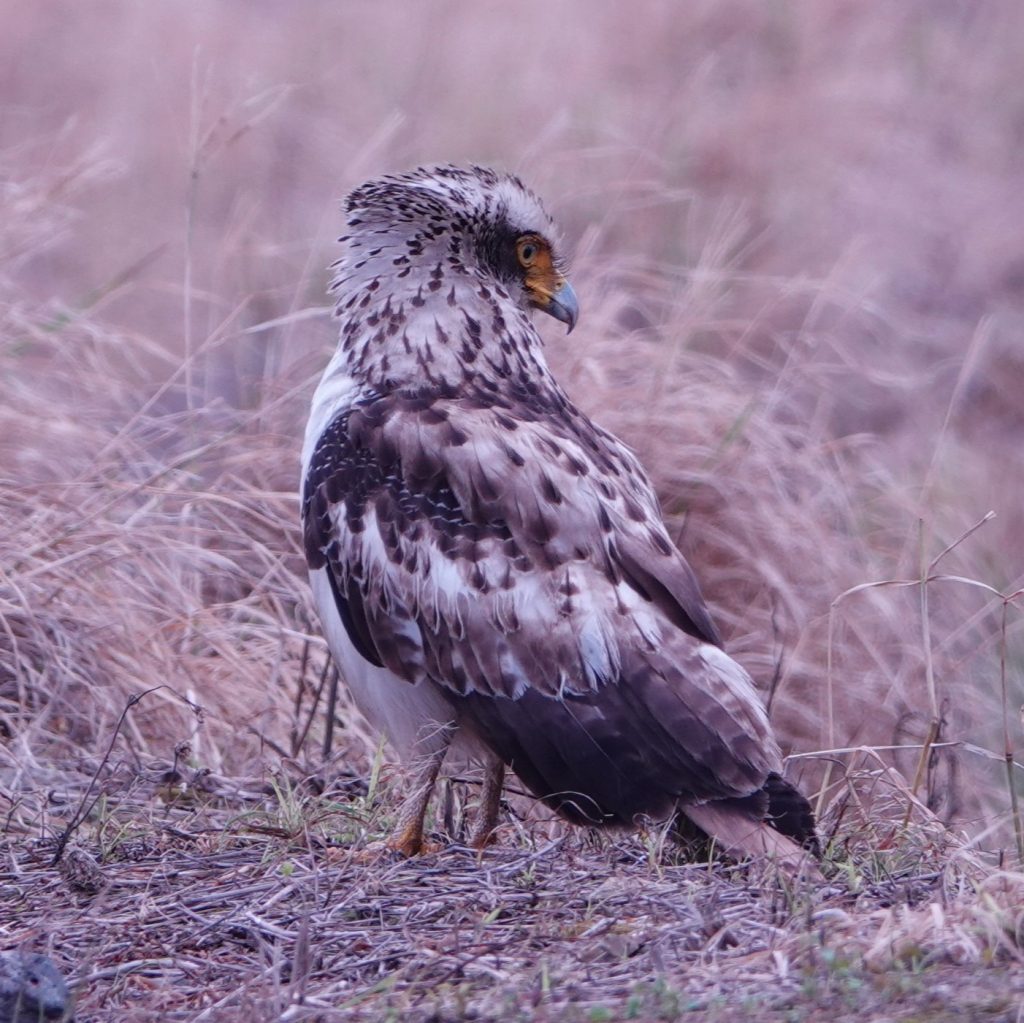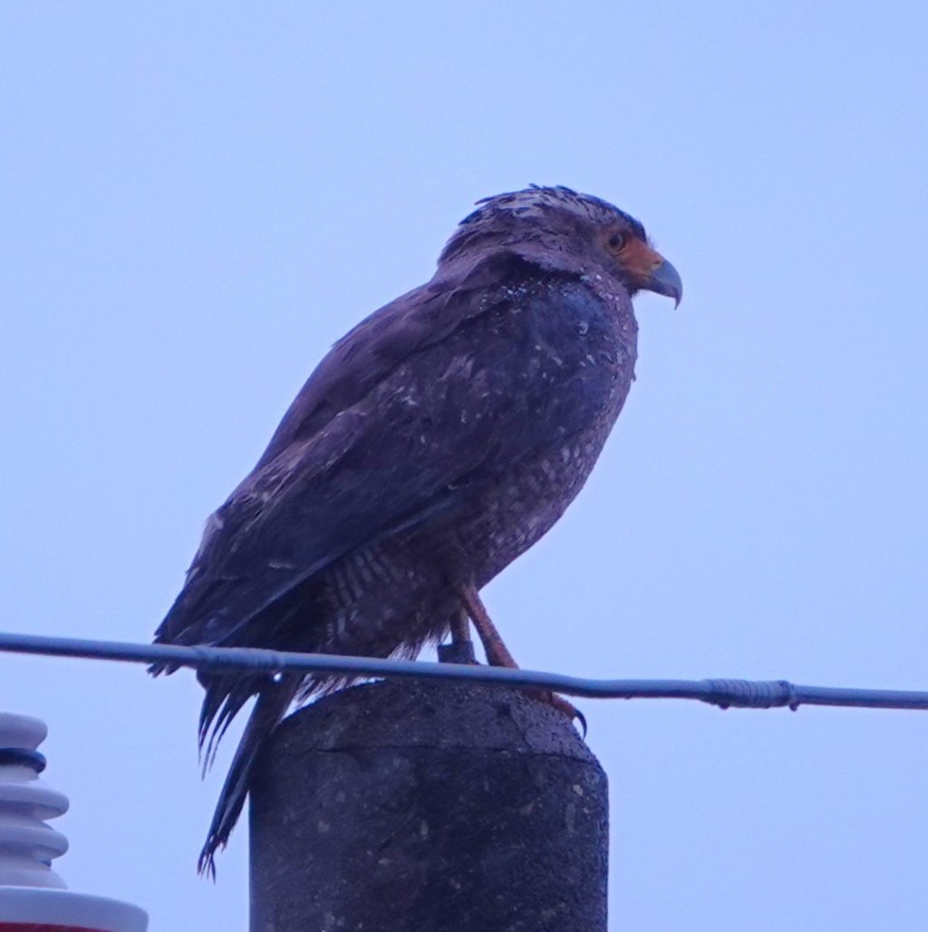 このカンムリワシは道路のすぐ横のスプリンクラーの上に留まっていました。車の陰に隠れて間近に行きましたが、逃げる様子はありませんでした。