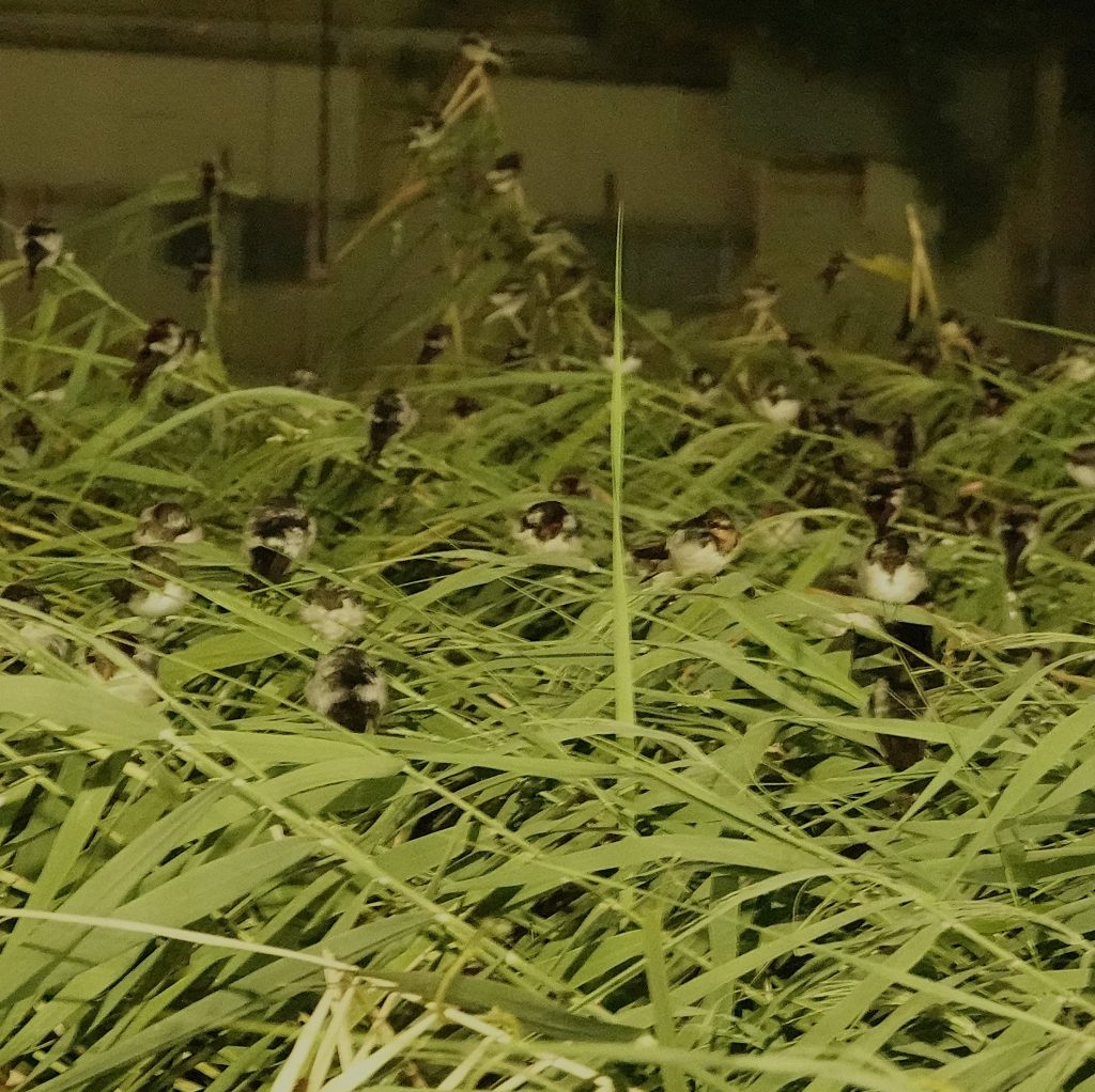 この8月の時期はツバメは子育てを終えて親ツバメは南下してしまいます。残された若鳥たちはヨシなどの生えているところで夜は集団でねぐらをとります。関西では奈良の平城京跡のねぐらが有名です。現地調査の方の話では5万羽から6万羽のツバメがねぐらをとるそうです。