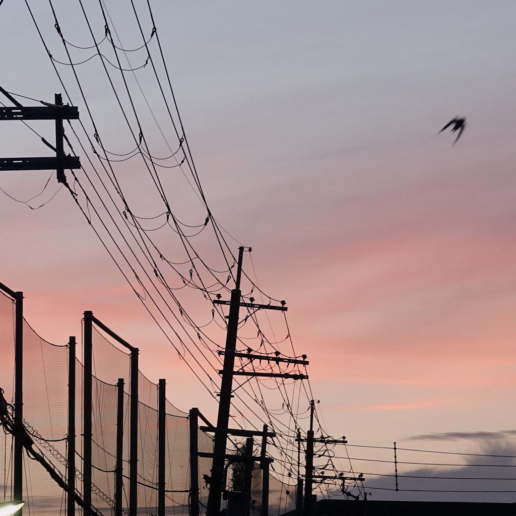 左の写真は8月10日にねぐら入りの観察の時に撮った写真です。ヨシにとまらず電線でねぐらをとるツバメもいます。右は北大阪急行線 千里中央 セルシーで子育て中のフン害を防ぐために管理者が設置した特注の赤い傘です。私の知る限り5か所はありました。昨年までは通常の傘をフン害予防に使われていましたが今年からはミニ傘に変更されました。道行く人々が「可愛い!」とスマホ撮りされていました。
