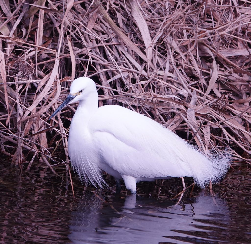 コサギ:この個体は飾り羽がもう生えかけていてとてもきれいです。カワセミ:下の嘴が赤みがあるのでメスです。20分ほどで2羽見つけました。
