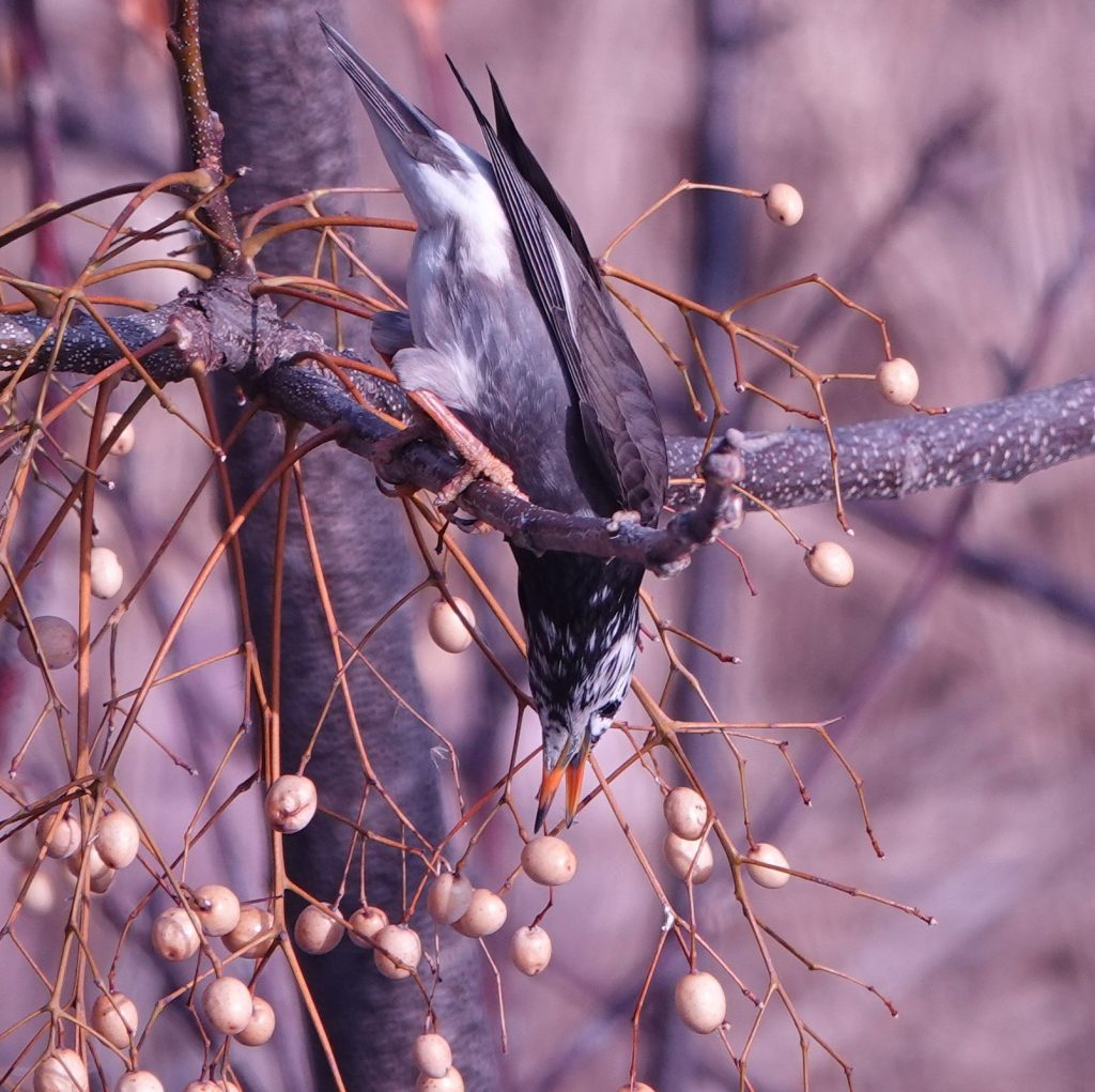 一人で少し不安だったのですが、最後にベニマシコを観察できることができて、気分は最高に盛り上がりました。啄んでいるのはアキニレかな?
