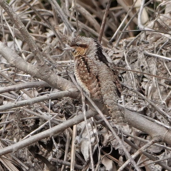 アリスイ:ここでアリスイを観察できたのはとてもラッキーでした。(2024年3月22日)アリスイは本州では旅鳥です。名前の通りアリを求めて移動します。独特な羽模様で蛇を思わせますね。(今年の野鳥!)