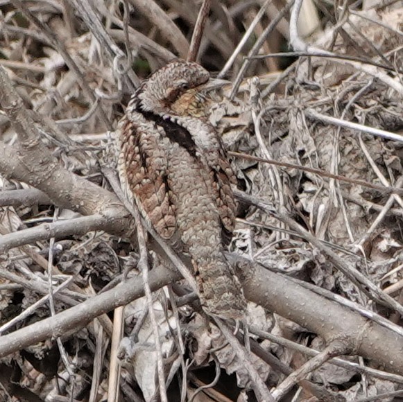 アリスイ:ここでアリスイを観察できたのはとてもラッキーでした。(2024年3月22日)アリスイは本州では旅鳥です。名前の通りアリを求めて移動します。独特な羽模様で蛇を思わせますね。(今年の野鳥!)