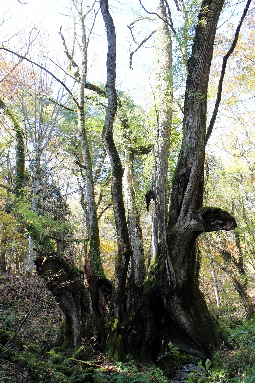 但馬高原植物園は兵庫県北部に位置するため大阪よりも少し早い紅葉で、自然林が多いためか植物園全体が秋色に染まっていました。 和池の大カツラはその中でも異彩を放つ大きさです。幹回りは16.4mで樹齢は1000年を超えるそうです。幹の側からは「カツラの千年水」という湧水が流れており、臭みがなく柔らかい口当たりでした。