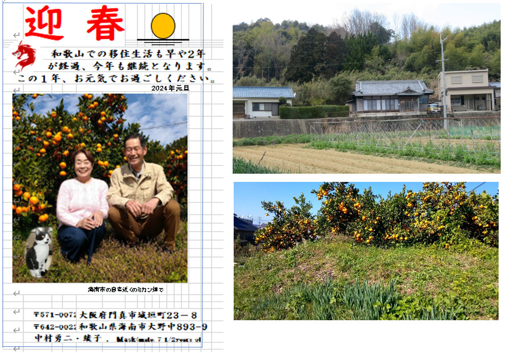 明けましておめでとうございます。 和歌山での移住生活を始めて早や2年が過ぎようとしています。 この2年間で移住地の習慣、今までの生活と現地のギャップを学びながら可成り楽しく地域に溶け込めた感じがします。山、川、海が近く、高野山、那智勝浦等観光地も近くに感じ、和歌山の田舎暮らしが気に入って、2人で今年も継続を決めました。田舎で、超高齢社会といえども結構近所の人との会話もあります。