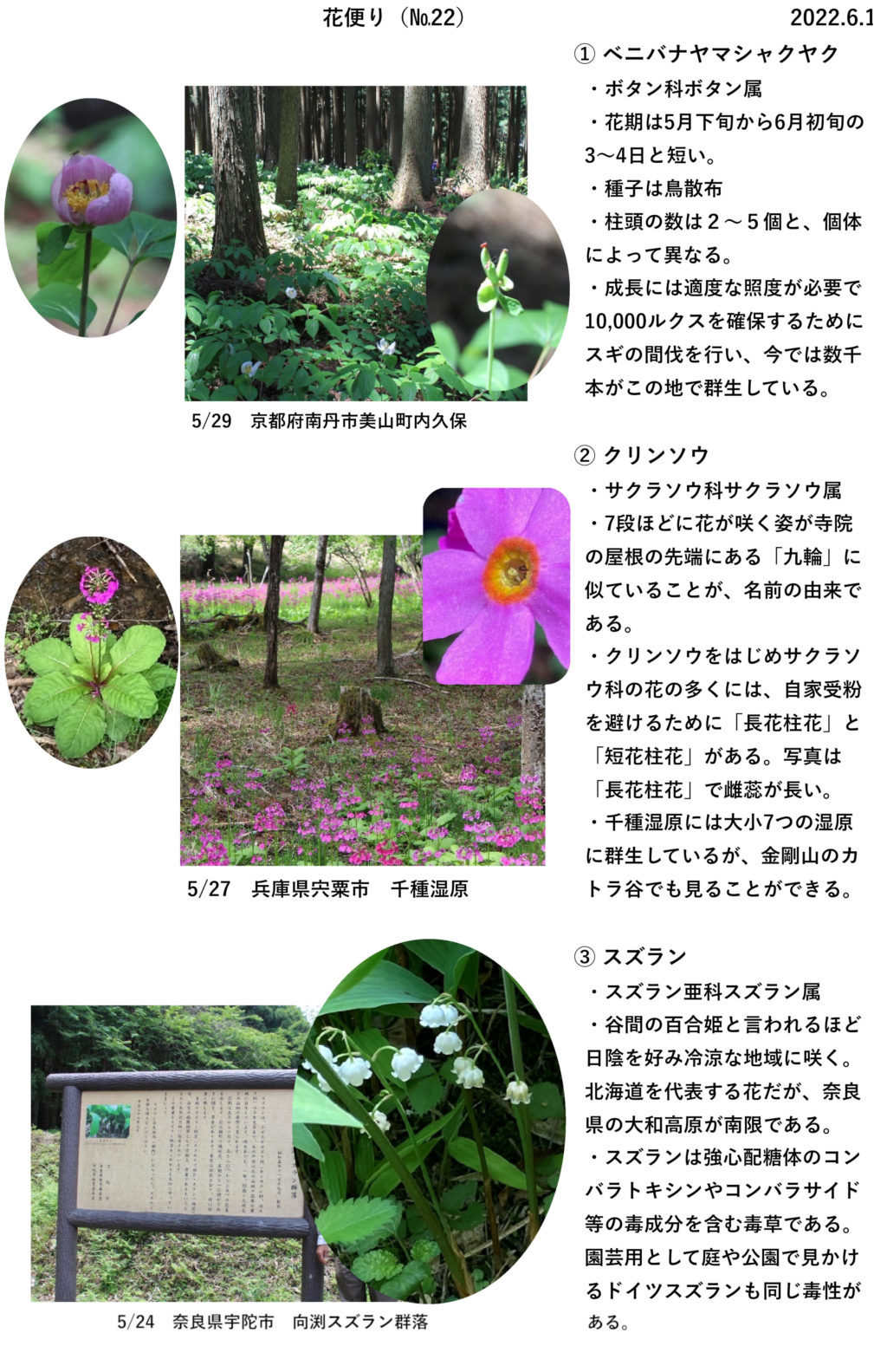 2022年6月11日 / 最終更新日時 : 2022年6月11日 saitoh yasuhiko 樹木・野草 山に咲く花 ビニル袋に入った梅の実が店頭に並ぶようになってまいりました。6月は雨の季節で木々の緑がさらに深まり、山歩きがますます楽しくなります。今回は以前より計画していた山地に咲く花を、近畿地方の各地で撮影してきましたのでお届けします。 Copy コメントを残す コメントをキャンセルメールアドレスが公開されることはありません。 ※ が付いている欄は必須項目ですコメント ※ 名前 ※ メール ※ サイト 次回のコメントで使用するためブラウザーに自分の名前、メールアドレス、サイトを保存する。