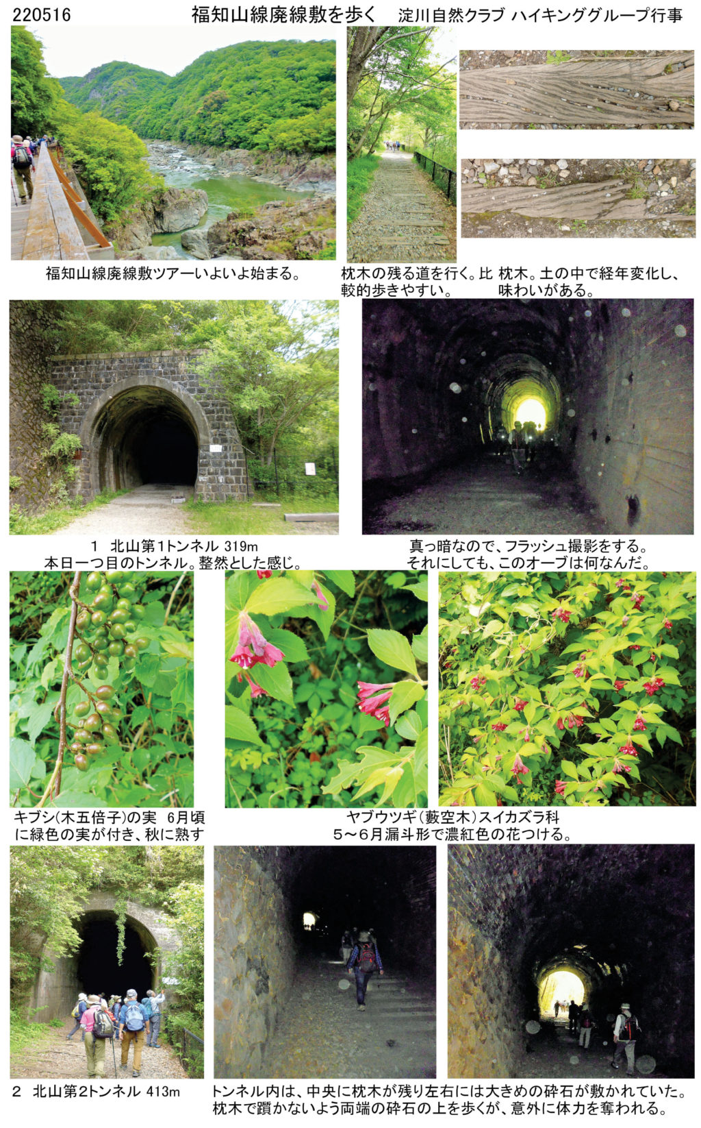 先日の同窓会楽しかったですね。 あの後、淀川自然クラブのハイキング活動として、5月16日に「福知山線廃線敷を歩く」に参加してきました。 かつて機関車が走っていたJR福知山線廃線敷。武庫川の渓谷沿いに続く約4.7㎞の廃線敷は、長らく立ち入りが禁止されていましたが、2016年に自己責任を原則としたハイキングコースとして一般開放されました。(兵庫県公式観光サイトより)