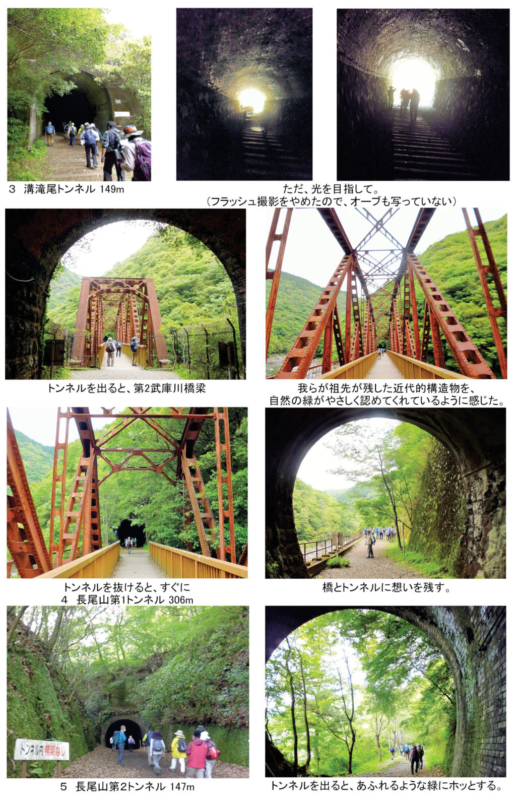 6つのトンネルや橋などの鉄道遺構、さらに武田尾のシライトソウの群生まで満喫してきました。 春たけなわ、皆さまの各方面での活躍を祈ってます。