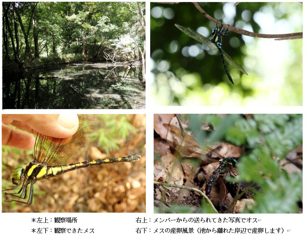 今年調査をしている箕面で、メンバーからヤブヤンマのオスを見つけたと写真が送られてきました。オスは複眼が青色で、宝石のような輝きをしています。こんな写真を見ると、このトンボを実際目で見て見たい!と思いますよね。でも昆虫に出会えるかは運次第。同じ場所・時刻に行っても必ず見られるとはいかず、今回も何度も足を運ぶ羽目に。また見られる場所が樹林に覆われた薄暗い池で、ヤブ蚊に悩まされながらの観察。 (8/7~8/21箕面市白島)
