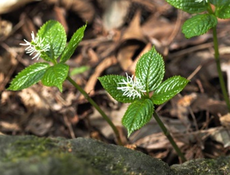 そして薬樹園の近くでは可愛い鳥に出会えました。ルリビタキ(雄)の幼鳥です。右写真のようにまだ体上面は茶色っぽいのですが尾羽、風切先端は既にルリビタキ特有の青色となり脇もしっかり橙色となっていました。まだ親鳥と離れて間がないのか低木の枝から枝へとぎこちなく飛び廻っていました。その他の鳥ではアトリ、シジュウカラ、シロハラ、ホオジロ、ツグミなどがいました。今日、展示館で入手したパンフレットで知ったのですが、神戸・六甲山で見られるスミレは30種類に及ぶと紹介されていました。我が家周辺のアスファルト道の端っこに咲くスミレ(マスミレ)はお馴染みですが、スミレにはそんなに種類が多いとはびっくりです。