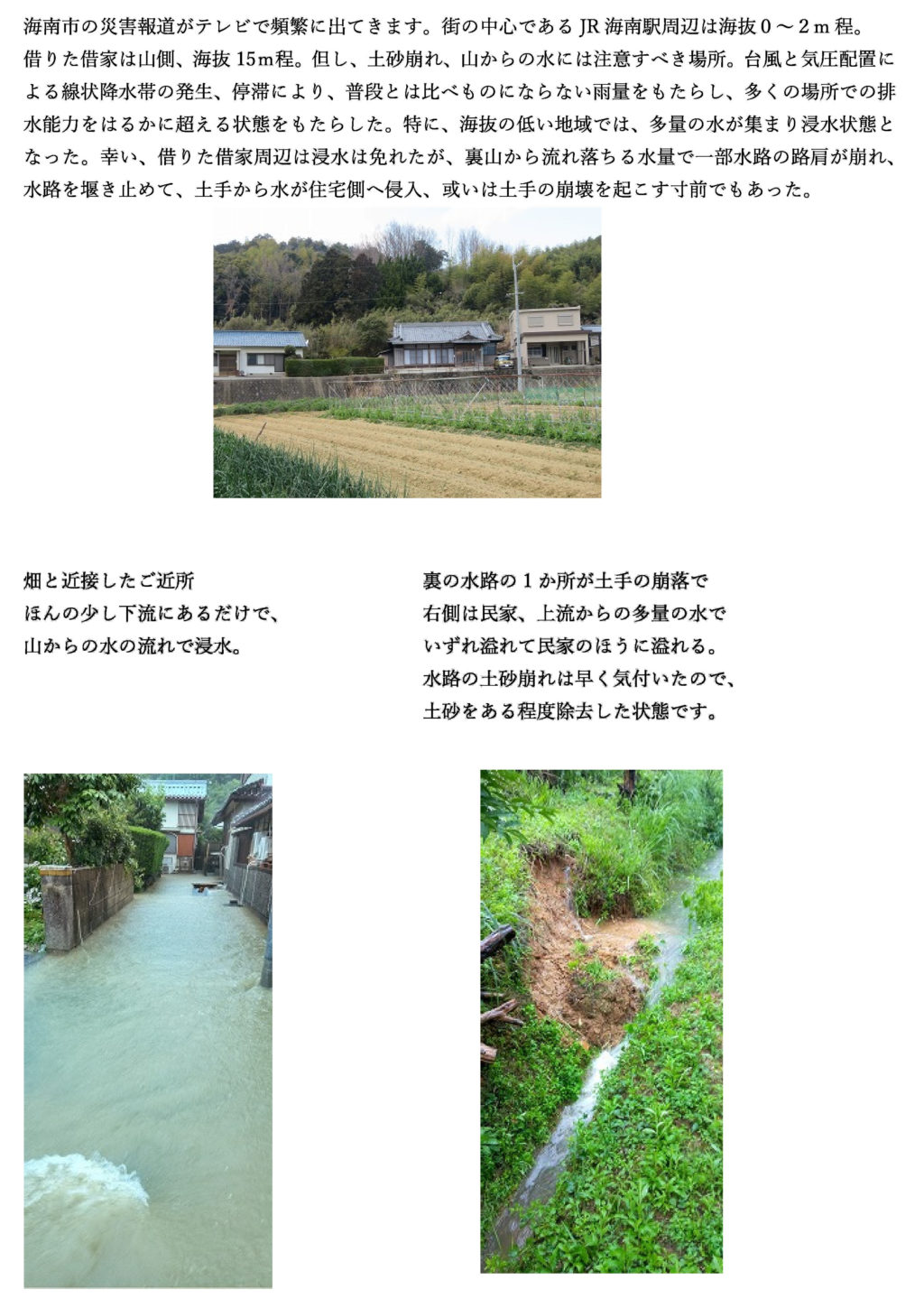 2023年6月11日 / 最終更新日時 : 2023年6月11日 nakamura yuuji 移住 和歌山での生活の一端(台風2号がもたらした災害) Yuji Nakamura 動画です。クリックすると開始されます。 写真上の畑よりやや低い場所の民家 Copy “和歌山での生活の一端(台風2号がもたらした災害)” に対して1件のコメントがあります。 マツダユキエ より: 2023年6月27日 9:24 PM 中村さんへ やはり、大変な被害だったのですね。スマホの方に連絡したのですが、返信が無かったのでそれどころではないのかなあ・・・と思っていました。もう1月近くたってしまいましたが、状況はいかがでしょうか。松田 返信 コメントを残す コメントをキャンセルメールアドレスが公開されることはありません。 ※ が付いている欄は必須項目ですコメント ※ 名前 ※ メール ※ サイト 次回のコメントで使用するためブラウザーに自分の名前、メールアドレス、サイトを保存する。