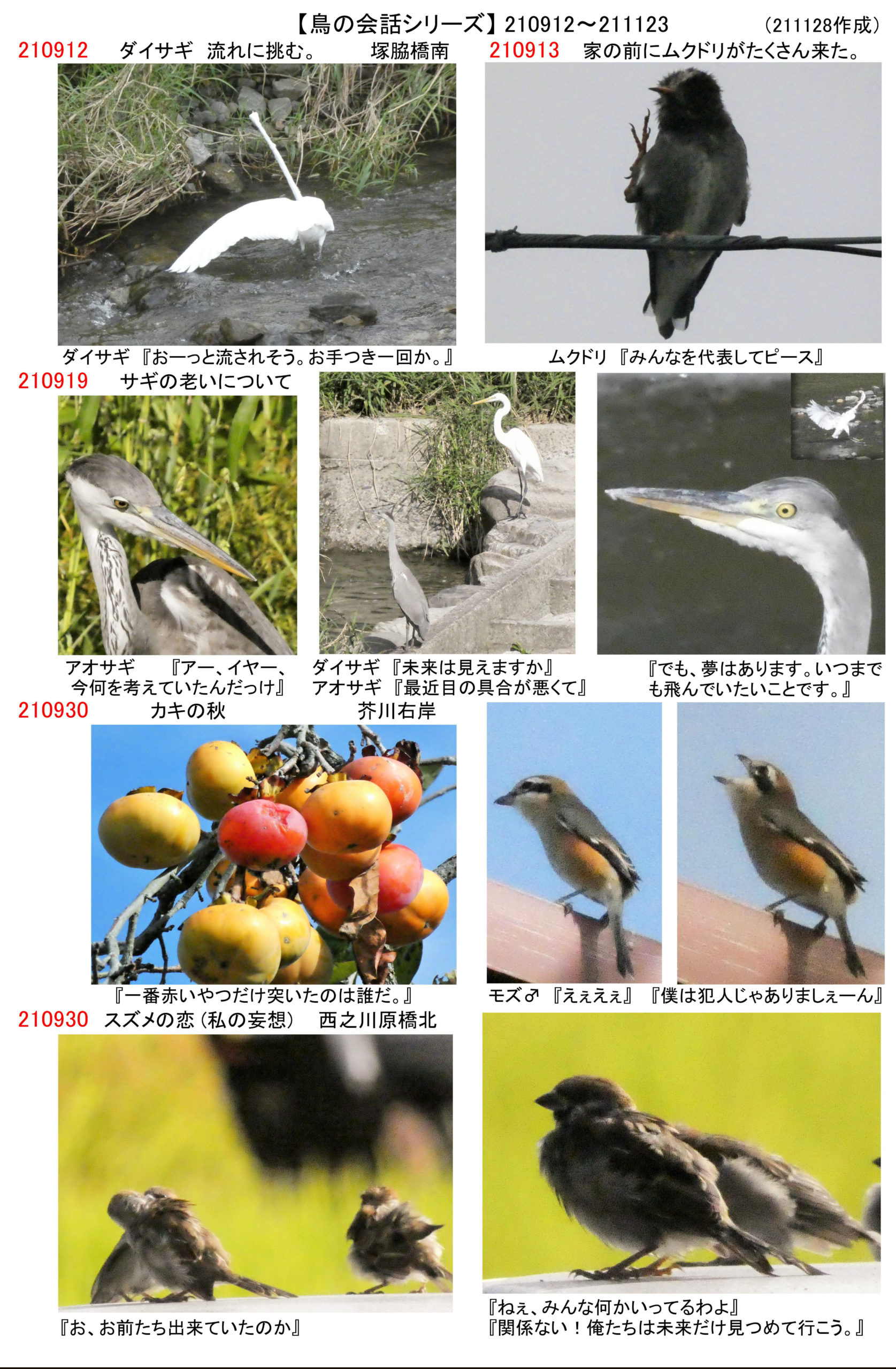 秋は鳥の季節。キンクロバジロなども戻ってきて、池や川は賑やか。とてもうれしいです。 ということで、しばらく休んでいた【鳥の会話シリーズ】最新号を作りました。何かを語り合っているような、また何かを語りかけてくるような鳥を見ることは、とても癒されます。