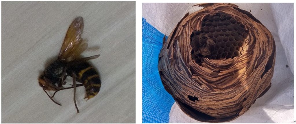その1:スズメバチ…ついこの前、部屋の中にハチが居ることに気が付いた。網で捕って外へ放す、しばらくして又一匹、網で捕り、足で潰した。ジップロックに入れてスマホで調べるとスズメバチの仲間でモンスズメバチと出てきた。その日、朝から、1時間毎ぐらいに一匹、又、一匹、夕方も天井のライトの光に寄って来た。合計7匹。天井の2か所の天板がずれているスキマから部屋に入ってきている様。ずれた板を動かし、スキマを無くしてその日は寝た。あくる日、外へ出て家の周りを注意して見ると、屋根の三角部の空気抜きから出入りしている。侵入防止の網は無い。大家さんに連絡し、その日の内に駆除となりました。